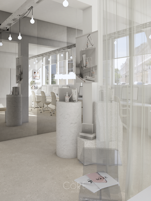 Nous allons utiliser les points forts de la marque pour les retranscrire en décoration : DESIGN, PURE, LUMINEUX, EXPERTINSTAGRAMABLE et MODERN.